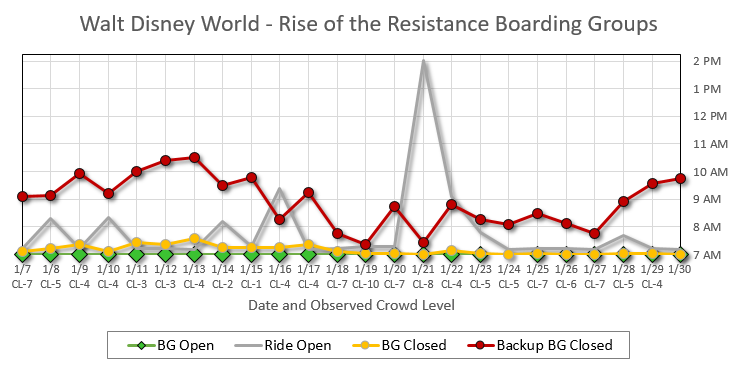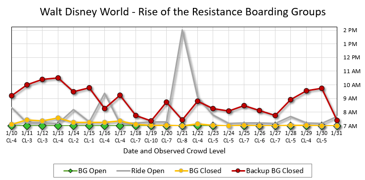 Today Backup Boarding Groups start at 71, and Backup Boarding Groups were all Distributed at 7:23. The ride did not open until 7:41. Does this all add up to a poor day for Rise?