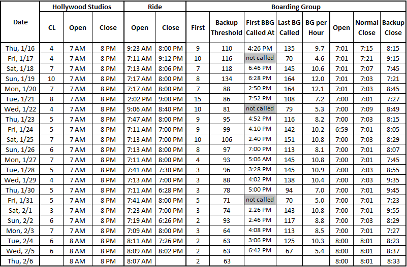 I went to the first 8:00 opening on Tuesday and got through security at 7:30. Everything was short except when we got to the tunnel to Bantu, there was a ton of people. (All the way up to muppets) It took 75 mins to get through Smugglers run. This was a CL 3 day. I also got my boarding group of 42 that day, and I hit the complete button 5 seconds after according to time.gov. Was nuts.