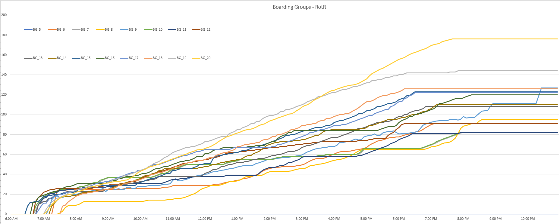 I believe they kept issuing backup boarding groups until 11am. Right now I have a number of 170 in my head. Not sure if I made that up or saw it somewhere else. We shall see tonight how far they get. Standard boarding groups went to 106.