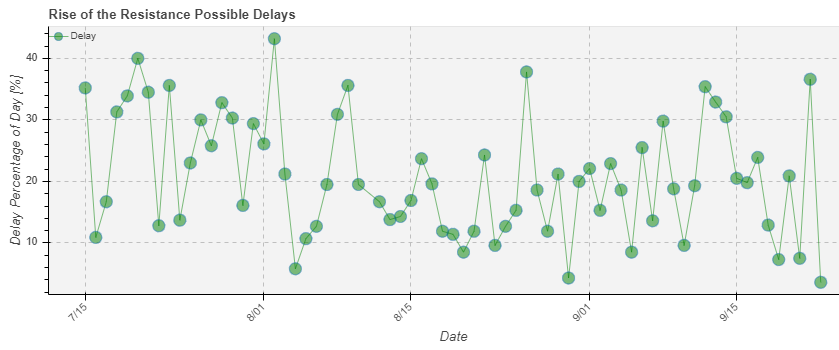 The percentage of the day that is downtime has been under 30% most days since mid-August, and generally hovers between 10-20%. Seeing days with downtime below 10% is becoming more and more common. Not too bad, but could be better (especially if we didn’t see those spikes on some days like 9/22).