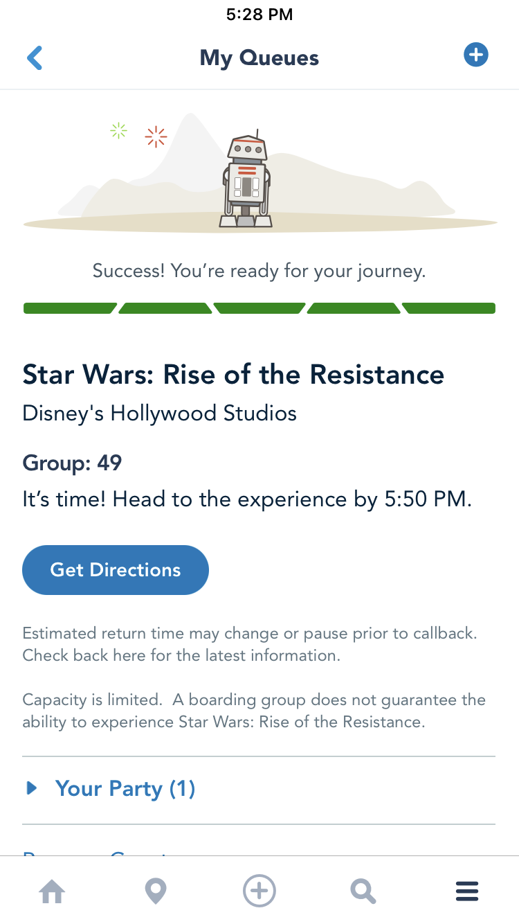 In December, our BG was called as we were walking to our H&V lunch reservation. Immediately following the lunch reservation, we had a Droid Depot reservation. We asked at H&V check in and they told us to enjoy our lunch, go to our DD reservation, but keep our receipts so that the CMs at the front of RotR queue could see the time stamp. We did this, showed up for RotR a couple hours late and said “We’re late for our boarding group but…” and before I could even explain the CM laughed “Well I guess you can’t join the resistance if you’re late!” He was laughing so I knew he was joking but DS is on the spectrum and 100% doesn’t get sarcasm, so he started to get panicky. The CM just kept laughing and said “No no, the resistance needs all the help we can get, go on in recruits!” They never even looked at the receipts or cared about our excuses, they just scanned us in and off we went joking aside.