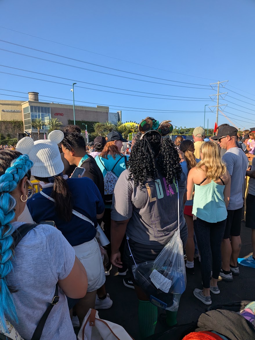 But there is ONE scooter in this frame. ONE. It’s in front of all these people, but there is no way you can tell me that everyone standing here is allowed in the ADA area. runDisney is really good about this in Florida. They have people monitoring their ADA areas. They had no one monitoring this in California at all. So people were just wandering in and staying there.