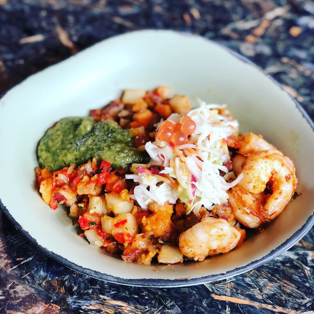 Creamy herb is the sauce it’s cooked in/is added to your bowl