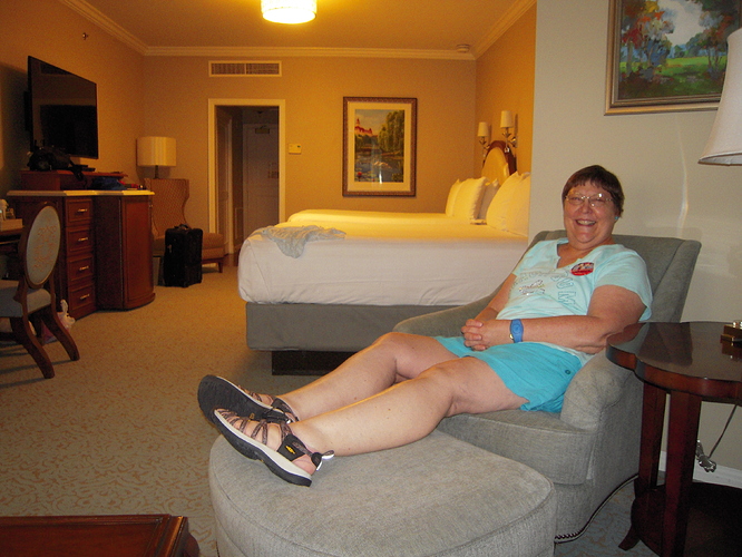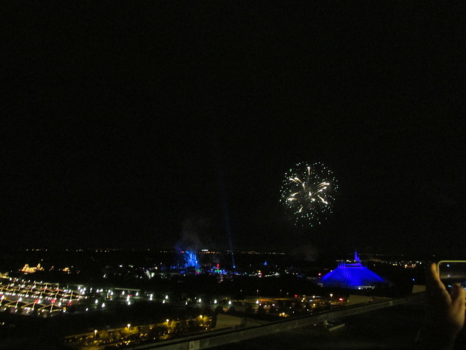 This was our 45th wedding anniversary trip …. without the kids, of course. Since we’ve been to WDW a few times before, always on the cheap, we decided to splurge this time on things we’ve never done, like staying at a “deluxe” resort, attending shows instead of rides, and touring areas of the WDW complex that we’ve never seen. So, to kick things off we rented points at the Beach Club Villa and made a bunch of reservations at the nicer restaurants, as well as schedule a couple of non-park days. Kind of expensive and for adults only. Despite rain every day, it turned out to be one of our most memorable visits ever at WDW. The last couple of trips we stayed at POR, but staying at BCV’s was only slightly more expensive for a “deluxe’ level room. BC resort is everything it’s billed to be: big, spacious, great location, cool pool and great accommodations. But quite honestly, very crowded and noisy too. After checking in the resort in late afternoon, we headed off in the rain to California Grill for our anniversary celebration dinner. The California Grill is sinfully expensive, but it was probably the single, best dining experience my wife and I have ever had, anywhere. Since we’ve been home, it is the first thing my wife brings up when anyone asks about our trip. She even took photos of our dinner. I guess women do that sort of thing. The view from the restaurant was great too, but all that was overshadowed by the outstanding food and service. Plus, we returned later that evening for a roof top view of MK fireworks.