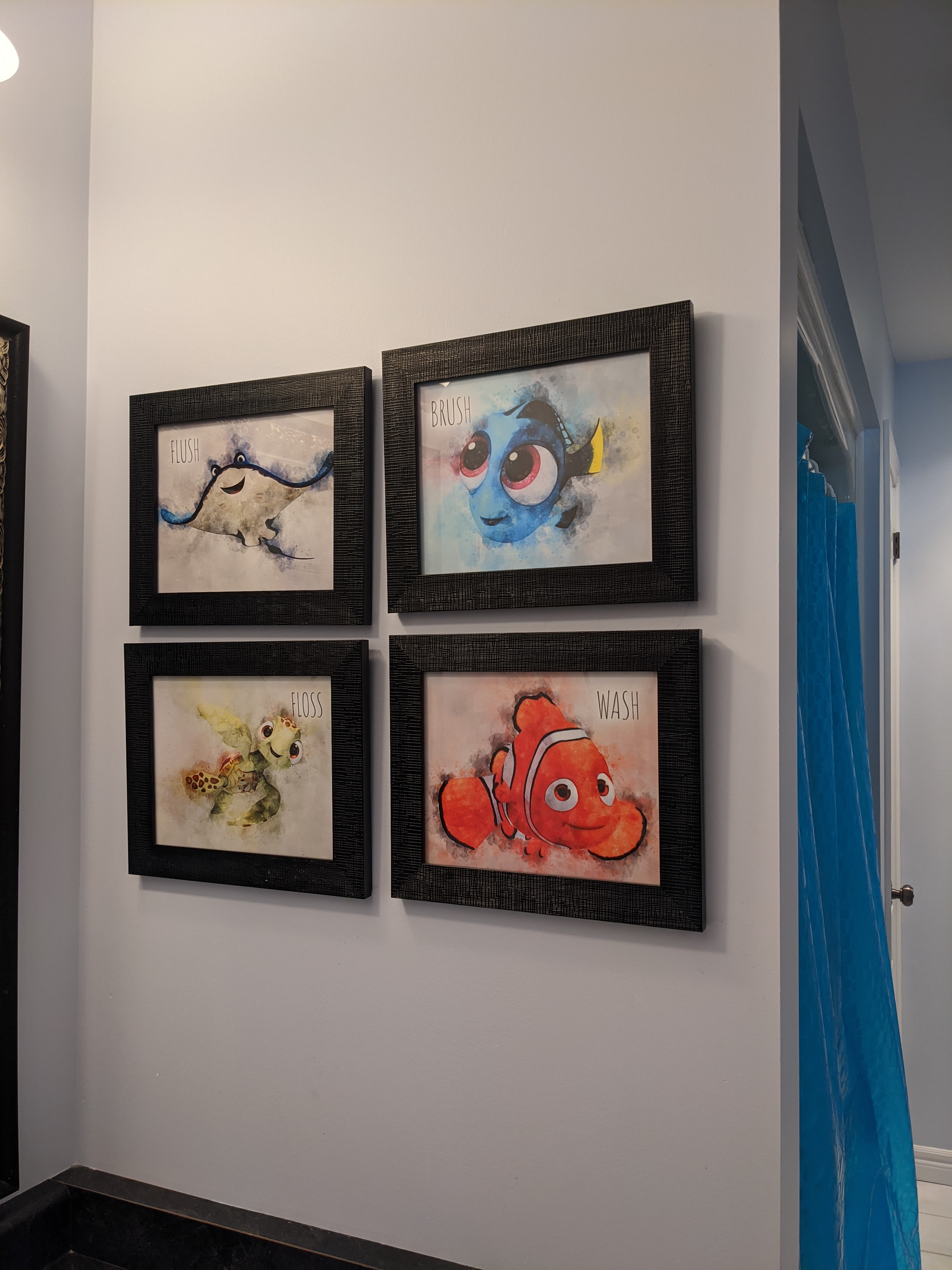 We have mostly decorated our kids’ spaces with Disney (my husband thinks it is weird for other areas of the house). We mostly used decals because their tastes will change and I don’t want to redo the areas every few months because they don’t like a movie. The first two photos are the kids’ bathroom. The third from our oldest’s star wars room. The last is in their playroom.