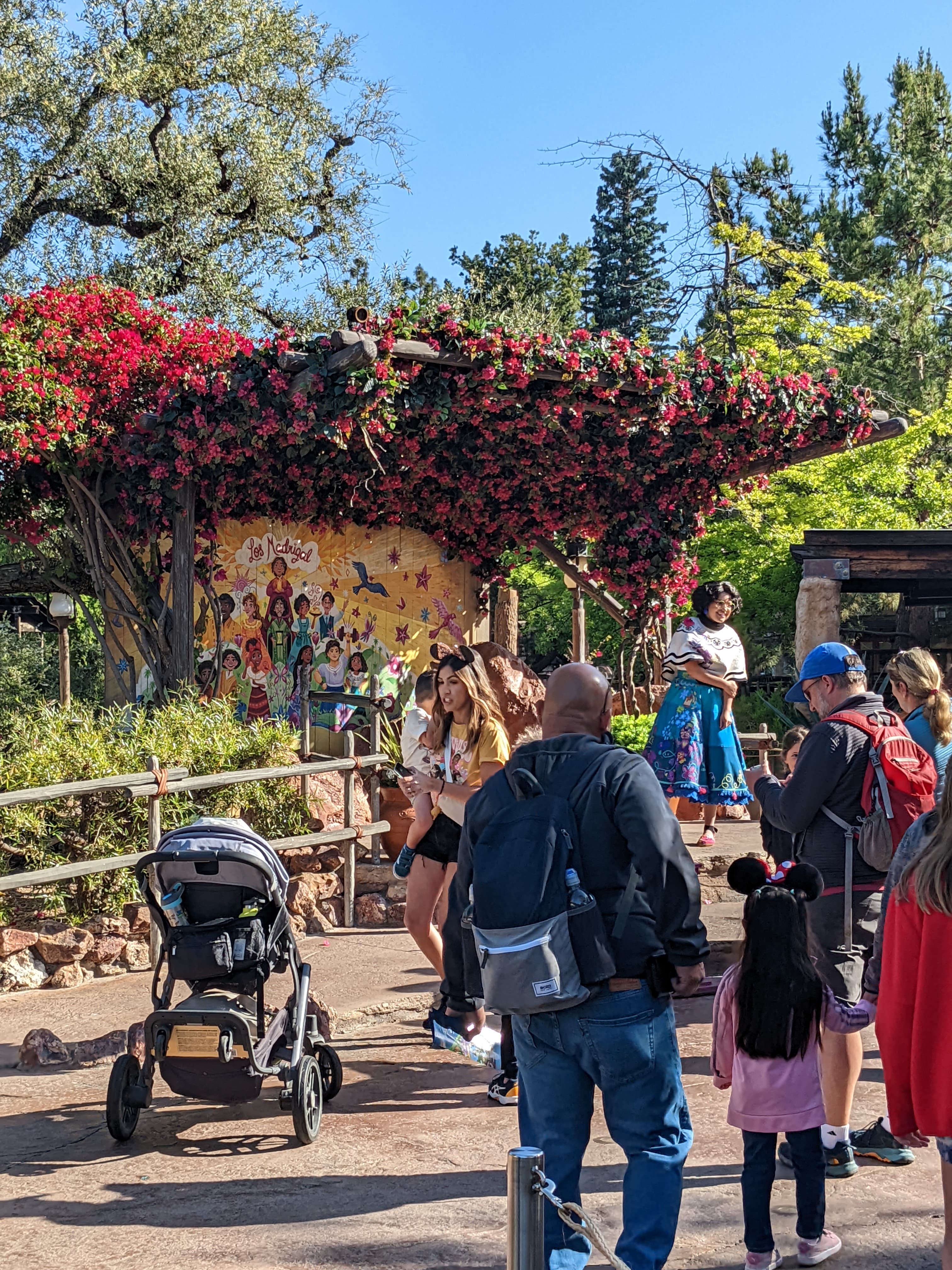 It will list the showtimes in the app - filter to entertainment and it’s the little icon at/on WebSlingers. The crowd gathers pretty early, but it’s easy to see from anywhere in the general area. Super short show.