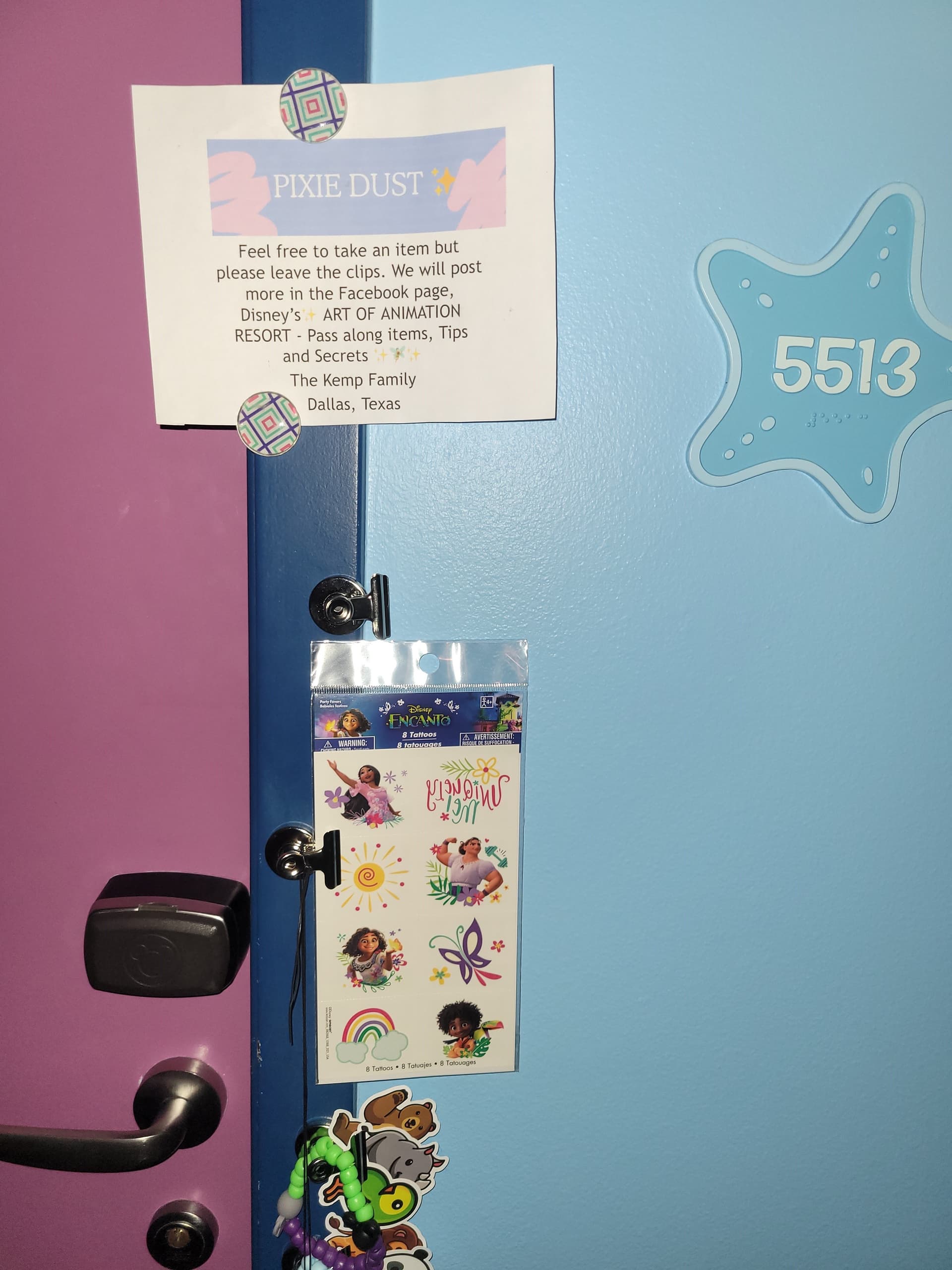 We found, for our first time, Pixie Dust from fellow guests !!! This was very touching and if you are reading this, Kemp family from Texas, thank you so much. My kids were amazed by your generosity and they wore your bracelets during the entire trip and still wear them now that we are back home !!! ![]()