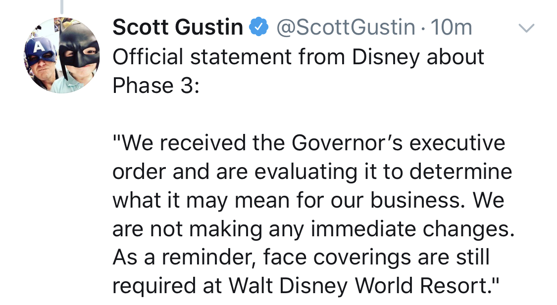 Seems like this doesn’t affect WDW at all but gives them a green light to ease some things when they decide it is right to do so, which probably won’t be for awhile. Am I missing something? Not totally staking out a side here, but trying to get to the heart of why this seems to be so upsetting to many here.