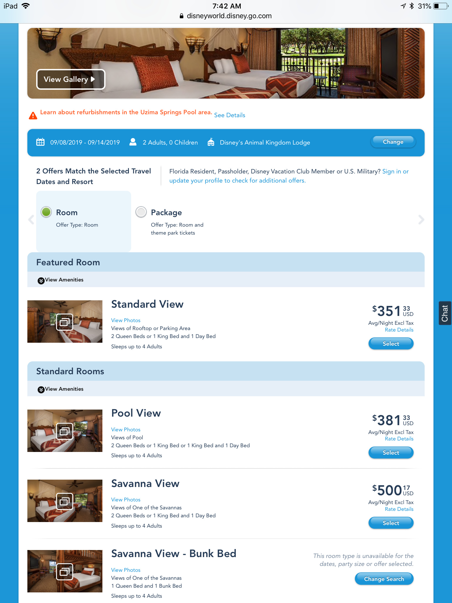So I telephoned Disney again, with @PrincipalTinker’s screen shot in front of me and the CM said that at this time the savannah club rooms are only available to the US market. Hmmm.