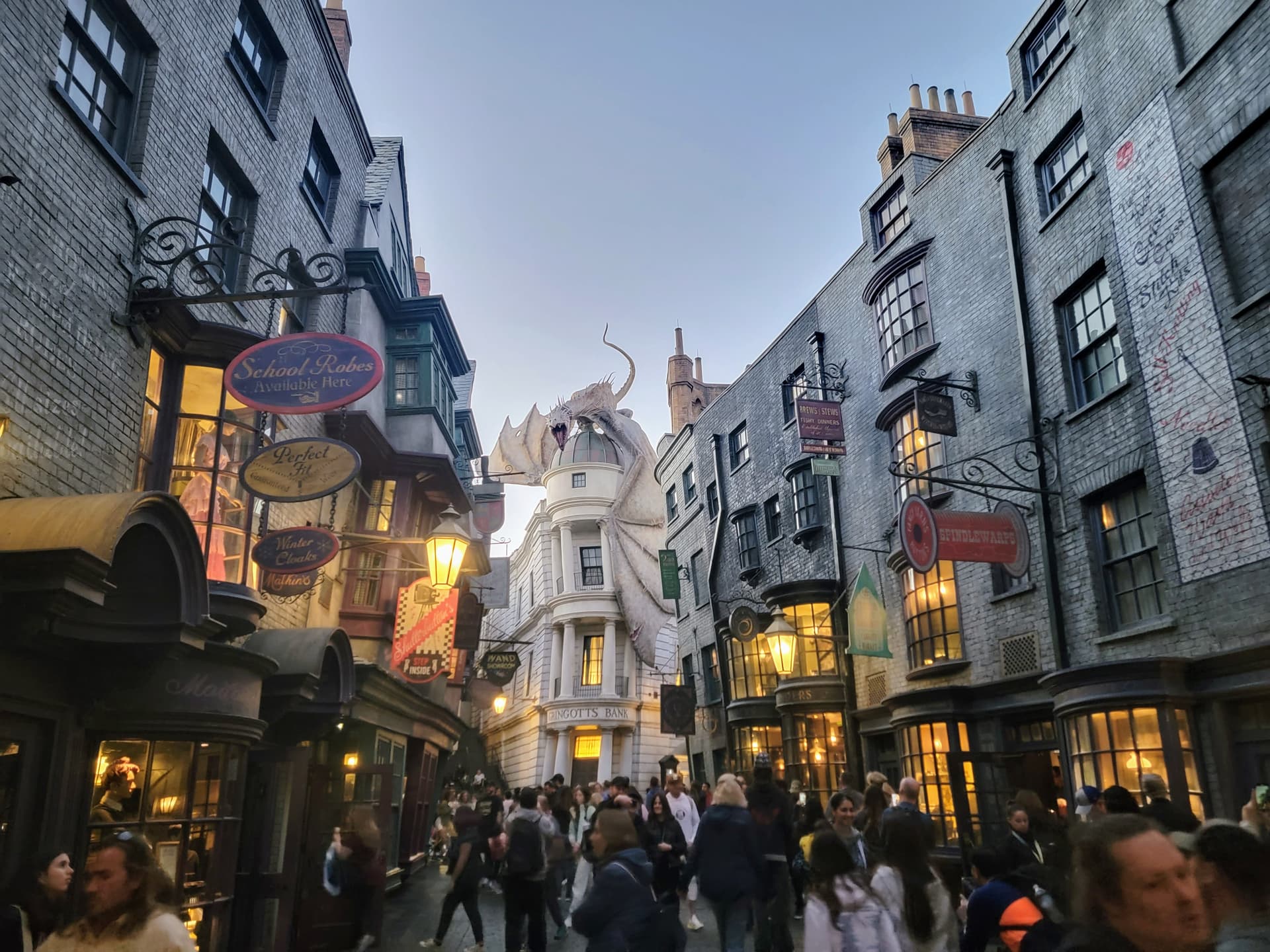 We walked out of Gringotts at 7:05, so no. Considered going elsewhere. But just came back to the hotel. Got Hot Chocolate in my refillable mug. It’s actually really good, so that’s my free snack. ![]()