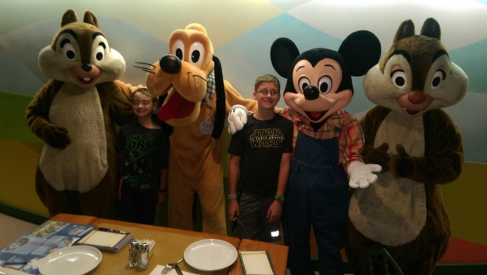 We chose to bus to MK and then boat to FW. This went smoothly and we had plenty of time to relax at FW before our seating at the first dinner show. The show was great, the food was what I expected, adequate, not amazing. I was singing “Raise the roof at the Hoop-Dee-Doo” until the next morning. After the show my boys decided to have a race back to AKL. DS10 and I were heading by boat back to MK and then bus to AKL. DS7 & wife were busing from Pioneer Hall to the front of FW, then to a park (ended up being MK) and then to AKL. There was quite the line for the boat and DS10 decided to jump out of our line for the MK boat and onto the resort boat, then get off at the Contemporary and walk to MK bus stop. I was impressed that he knew this was an option, so we went with it. It didn’t pay off though, as we were boarding the bus at MK I received a text of a picture of DS7 & wife in our hotel room already. Once we all got back into the room it was time for some unpacking and relaxing as the plan was to be at MK by 730 for Welcome Show and rope drop. .