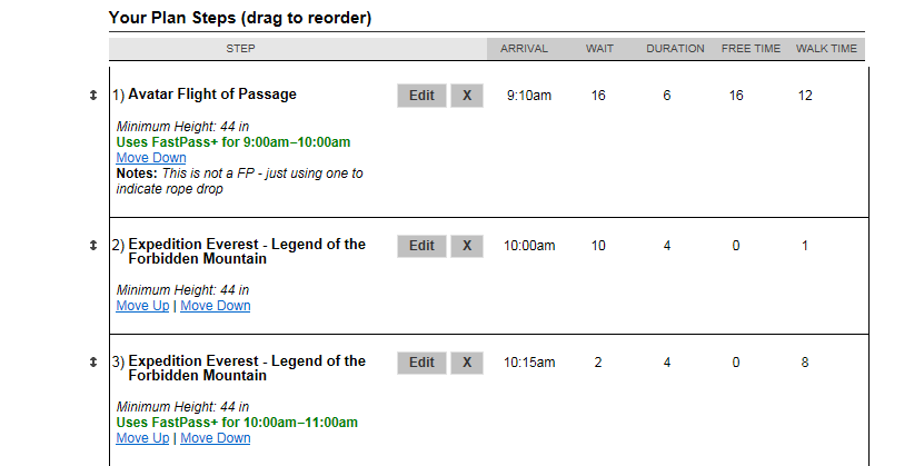 Interesting…I just tried deleting my fast pass for EE altogether and just showing that I wanted to ride it right after FOP and it tells me to ride it at 9:44. If I attempt to add the FP back though it reverts back to exactly what is shown above. I think I’ve confused it.