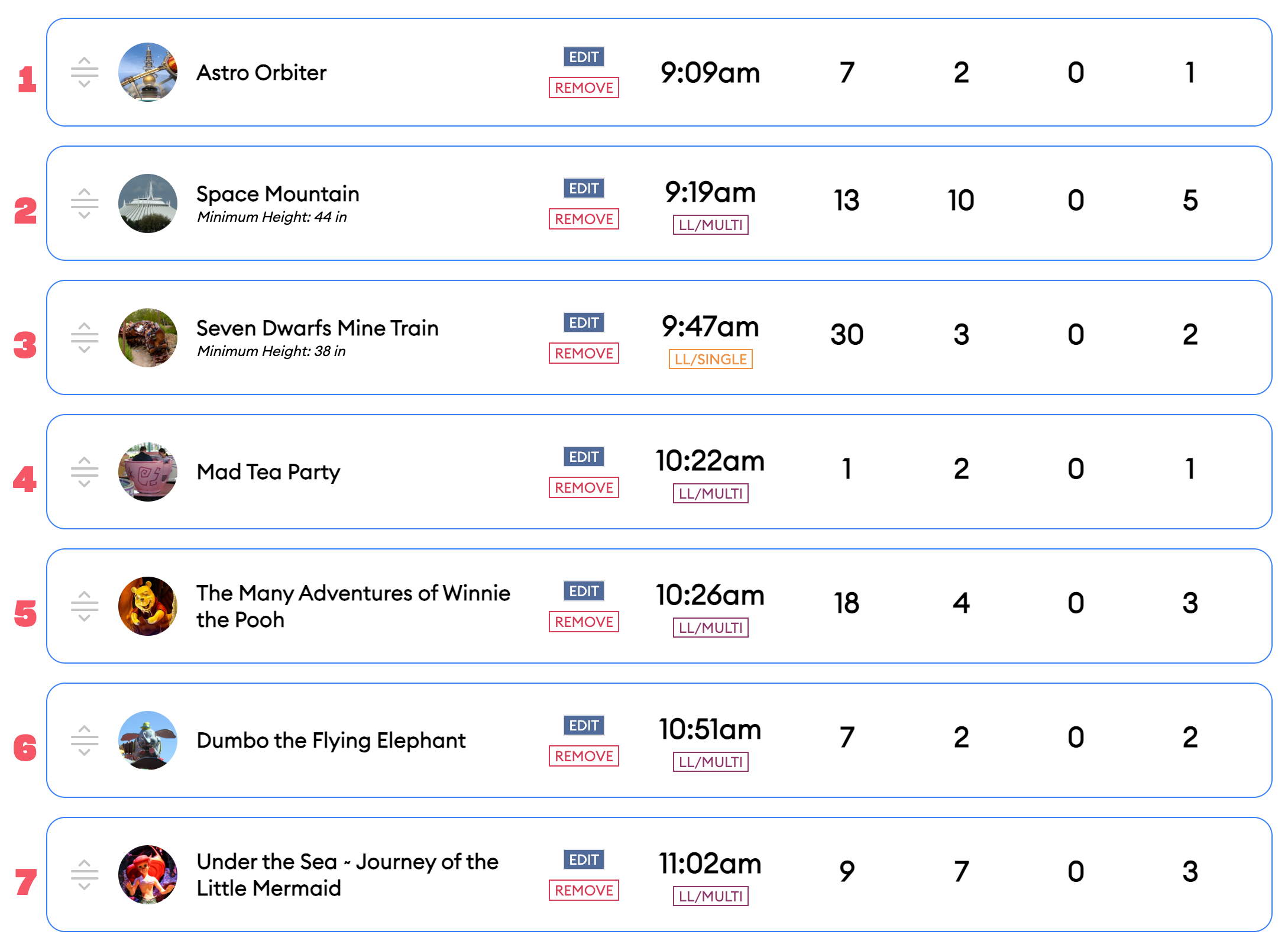 I gave up on optimize on my last trip when it sent me to WTP before SDMT at rope drop. Those were the days where it assumed we weren’t at front of the pack, and being a newbie to the tool I followed it - completely screwed up our day by 2 hours.