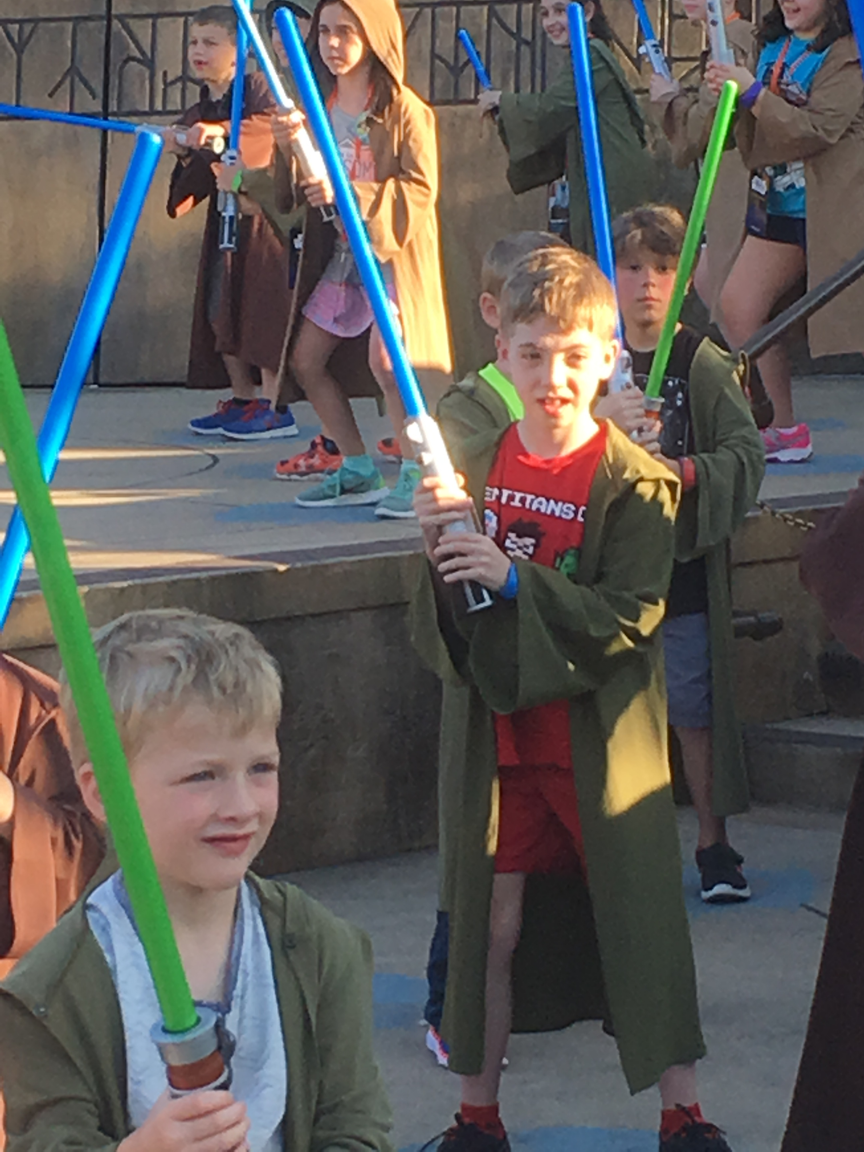 And boy howdy did this plan start out well! We were on the bus to HS at 7:45 am with only a 5 min wait outside of the Contemporary. We were there by 8 am and thru bagcheck to the tapstiles around 8:10 am. This proved to not be as long a wait as you might expect, and we were almost at the front of the line. They let you through the tapstiles around 8:35, and we briskly walked down Hollywood Blvd. left along the lake, to the Jedi Training signups. We got here at 8:40 and they only made us wait barely 5 min before taking us down to start the actual signups. I didn’t read about this before the trip - signups started well before the rope dropped in the rest of the park. We had maybe 30 people in front of us - when it was our turn, the only show full was the very first one of the day, which was fine as our first choice was the 6:10 pm show anyway.