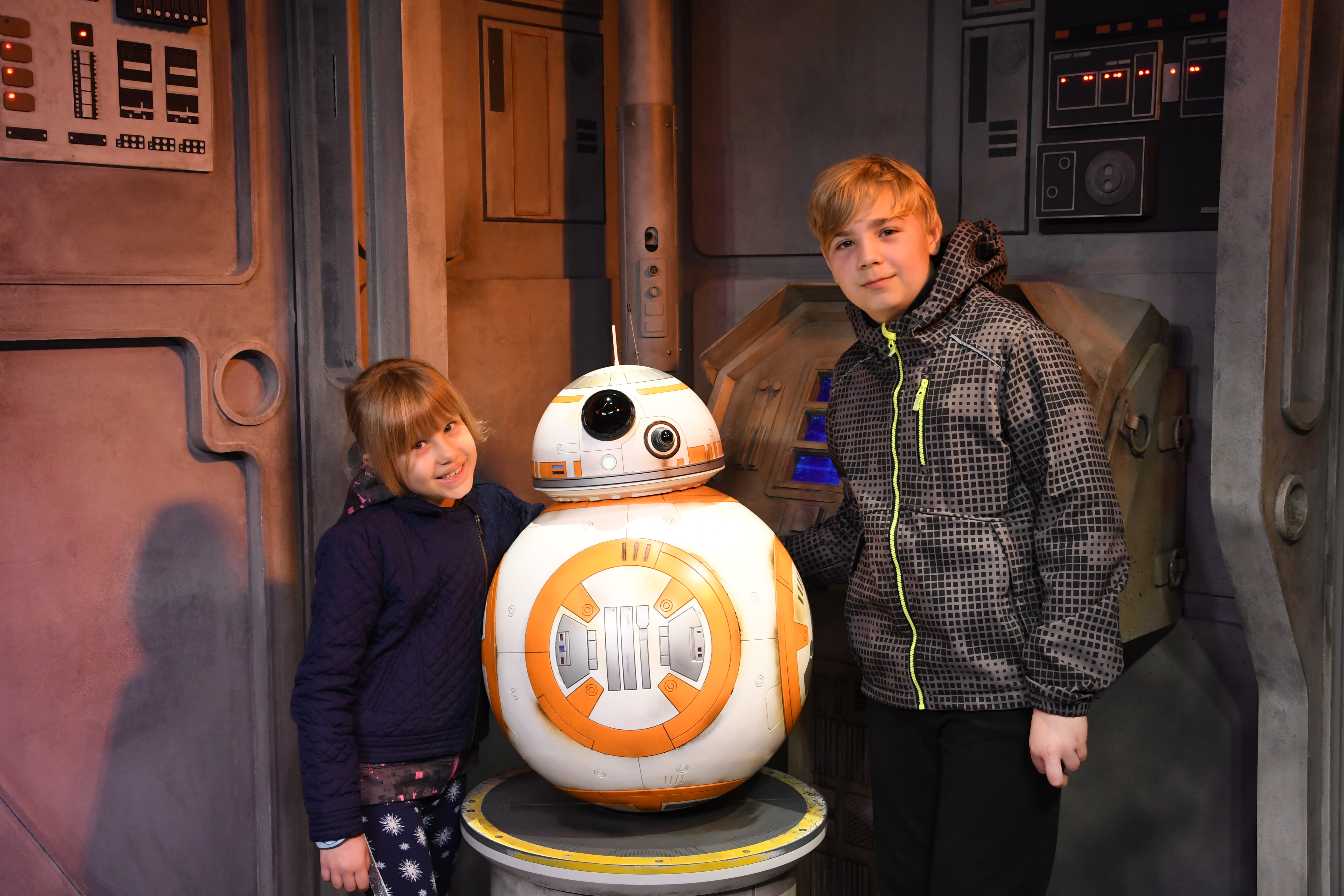 AS2 is next, the line is 25 minutes long at this point, but we want to ride it. After some exploring of GE and tasting blue and green milk, we head to our first fpp of the day – Star Tours. Not a new ride, but feels new to me with the Rise of Skywalker video.