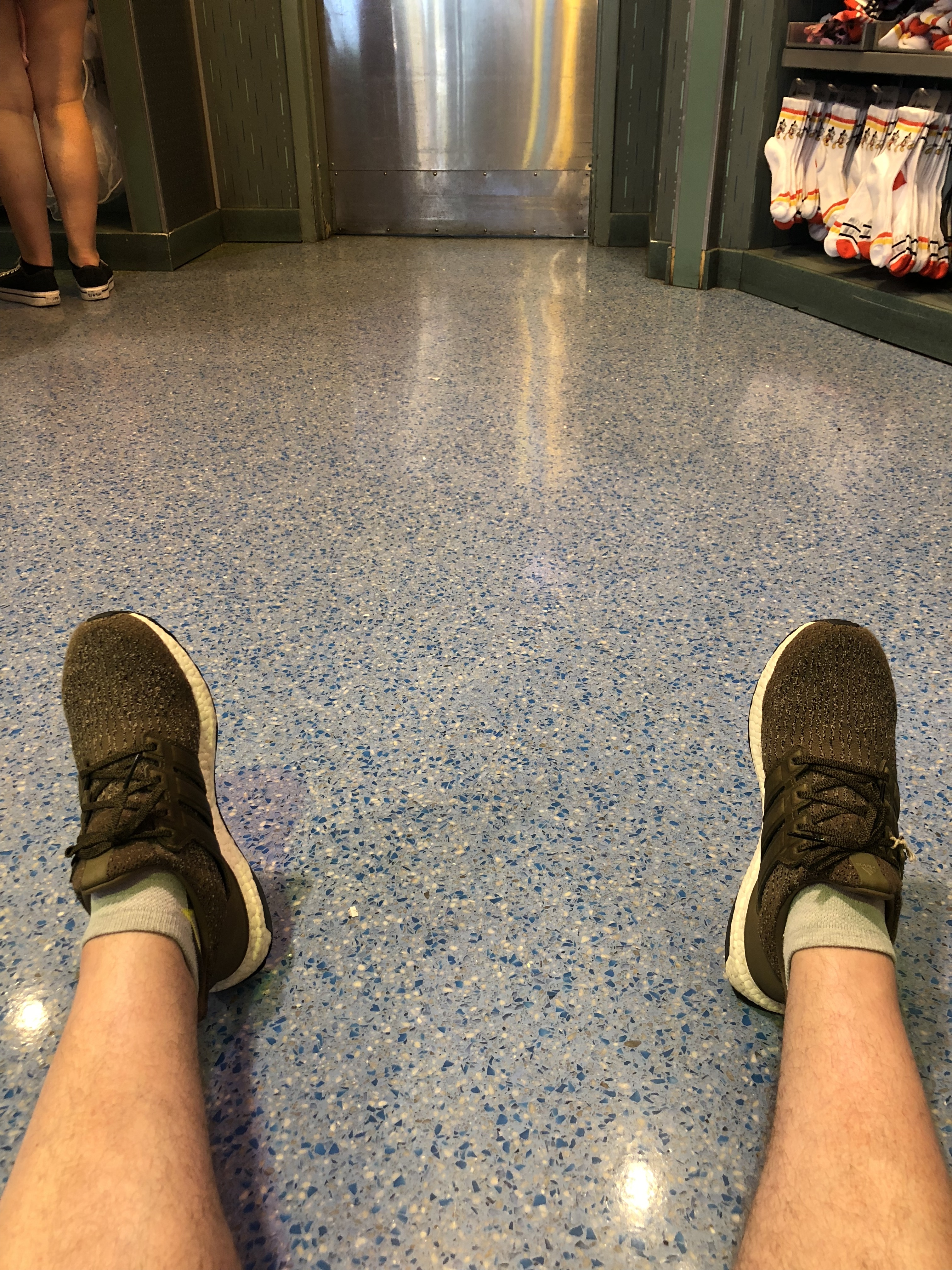 I’m sitting on the floor in an air-conditioned gift shop drinking free (and funky-tasting) ice water and just getting over the horror of the outdoor, full sunlight, “fast” pass line for BLSRS (which went all the way back to Monsters Inc), followed by being bashed to pieces in Space Mountain.