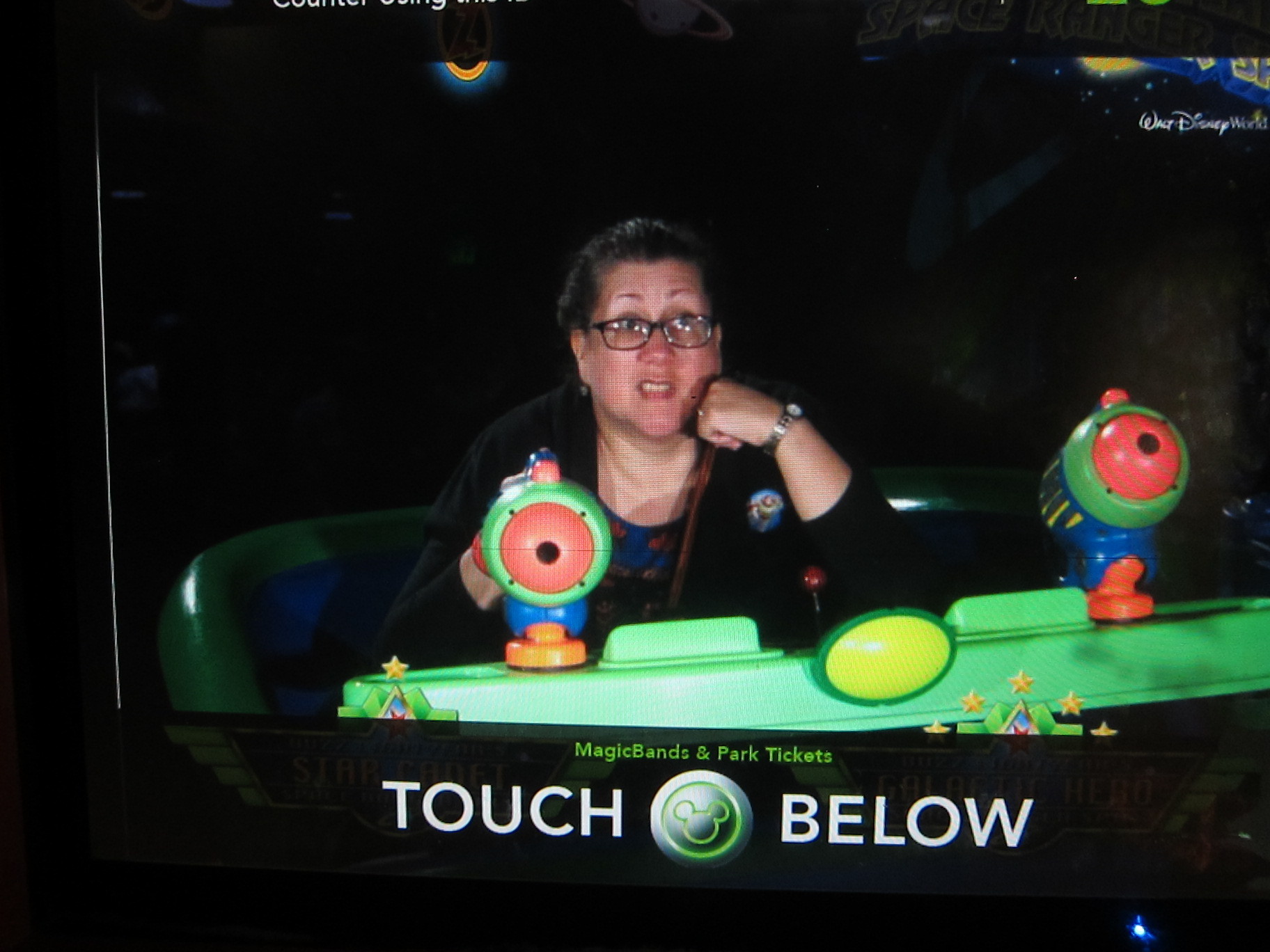 We had plans to meet at the Great Movie Ride @10, but we were all early and got on line by 9:45. The line was very short and we had a great time. We had front row seats – first time! – and it was so much better up front! We could really see the guide and gangster up close, which made it all funnier. After the ride we needed to kill some time before our TSM FP, so we went to One Man’s Dream. We hadn’t been for several years so we felt like it was all new. We especially liked the models that Walt had built. But we didn’t stay for the film, as it was Toy Story Time!! This ride is always fun. Since we are a group of 5, someone has to ride alone for this kind of ride. I volunteered as I am not particularly competitive (iow, I stink!) so I just relaxed and had fun.