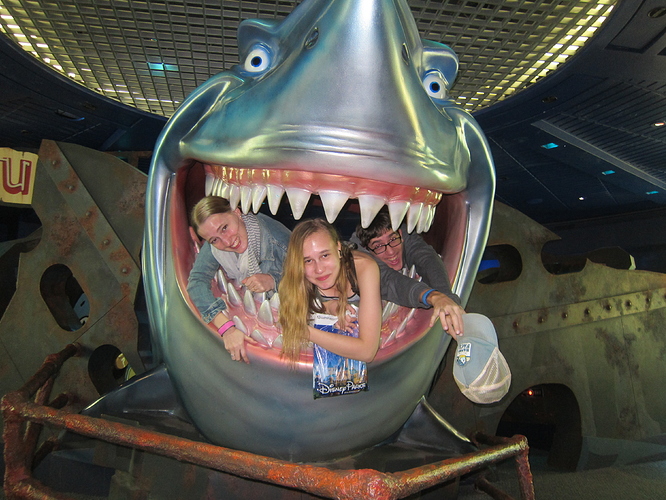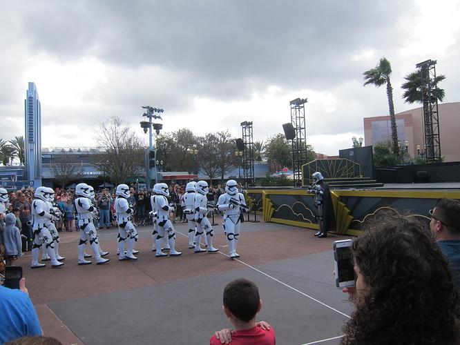 Afterwards, we headed over to the Star Wars Launch Bay. My husband and I had been there last year, but the kids were so psyched, all wearing Star Wars shirts. The film was a big hit, as we love “the making of…” stuff. And we, as a family, also really enjoy concept art so we spent a lot of time looking at that. We have a Disney Visa, so we got to see a “special” character, who turned out to be Kylo Ren. I get the feeling that they wanted to keep the line moving and Kylo was herding – intimidating! – us into position for a photo, but my kids wanted to have a little fun first. Kylo played along, but the PhotoPass woman was a real sourpuss. But the picture came out well