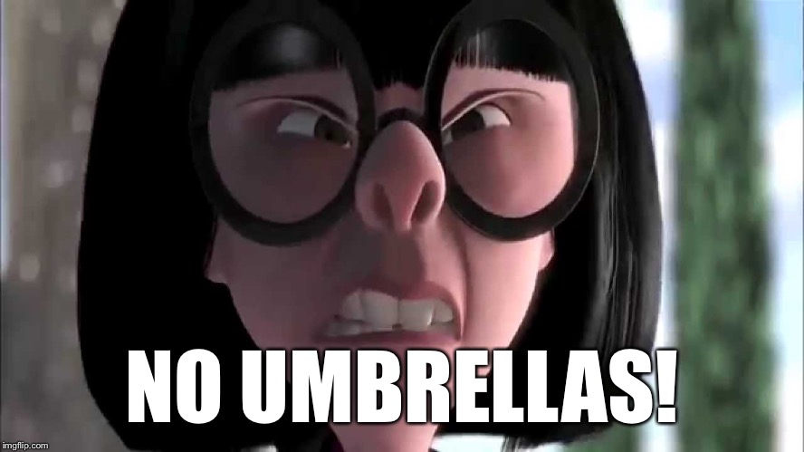 Ponchos… The rain can blow in and you are fighting the wind. Plus, umbrellas are intrusive to the people around you. Also, if it’s a really rainy day you can just wear the poncho all day without having to hold your arm up in the air constantly.