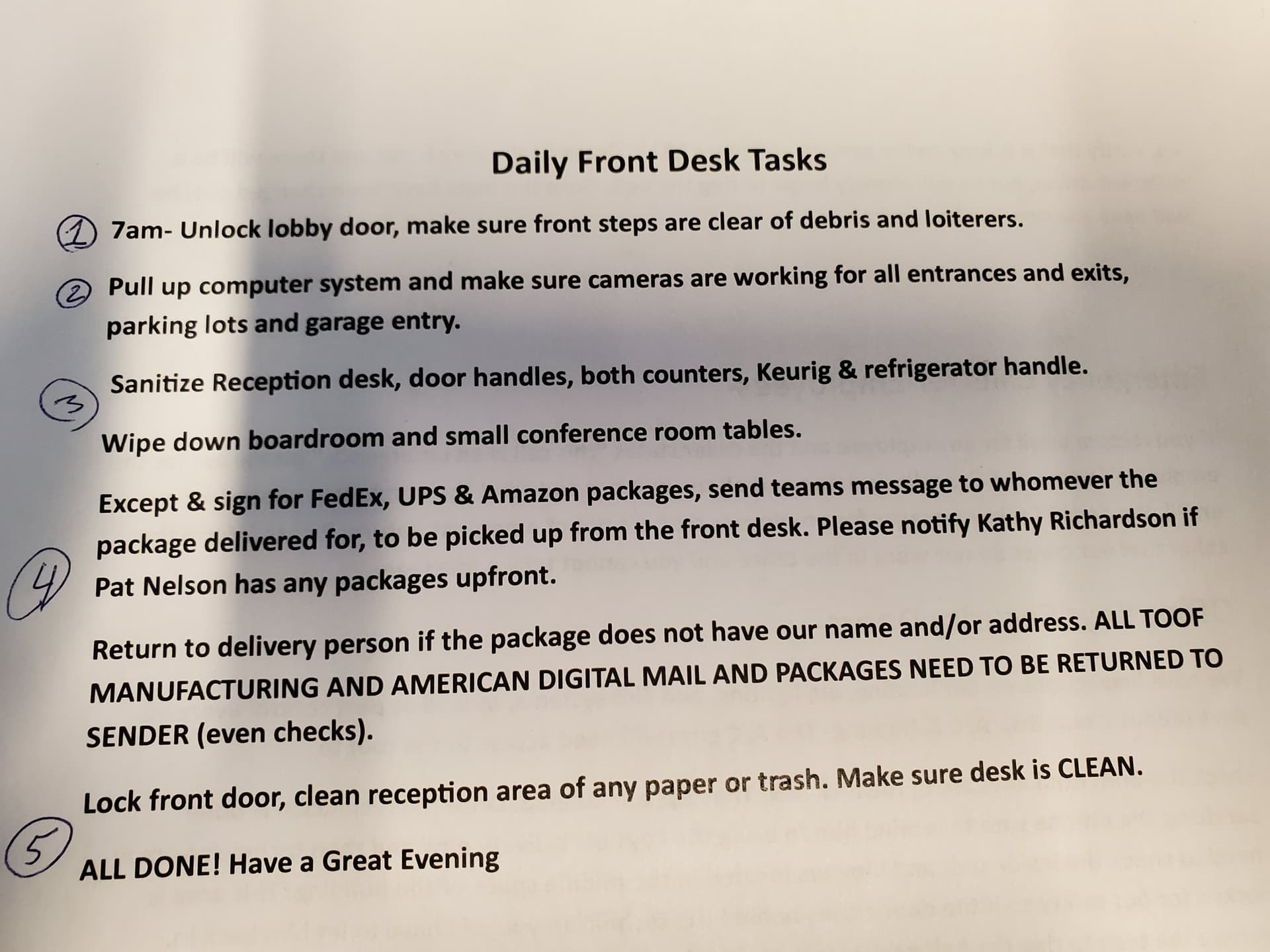 By all means, notify Kathy if Pat has packages