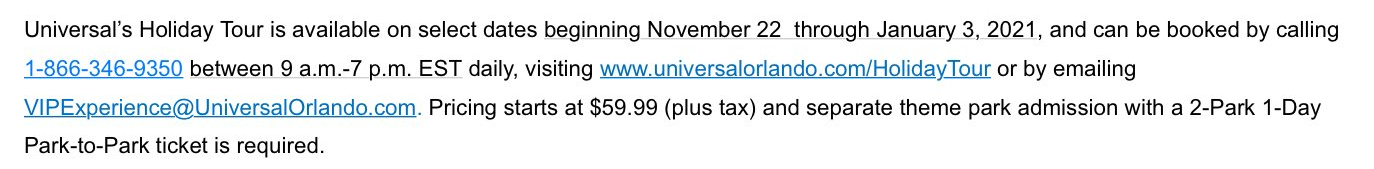 The “select dates” are going to be the week of Thanksgiving (Nov. 22 - 29) and the Christmas “peak” season. (Dec. 18 - Jan. 3)