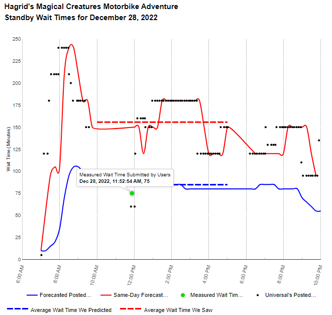 I did find 1 actual wait from last Christmas time of 75 minutes at 11:53am: