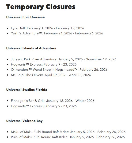 Universal is not sharing any info, except that it is marked as closed on the app.