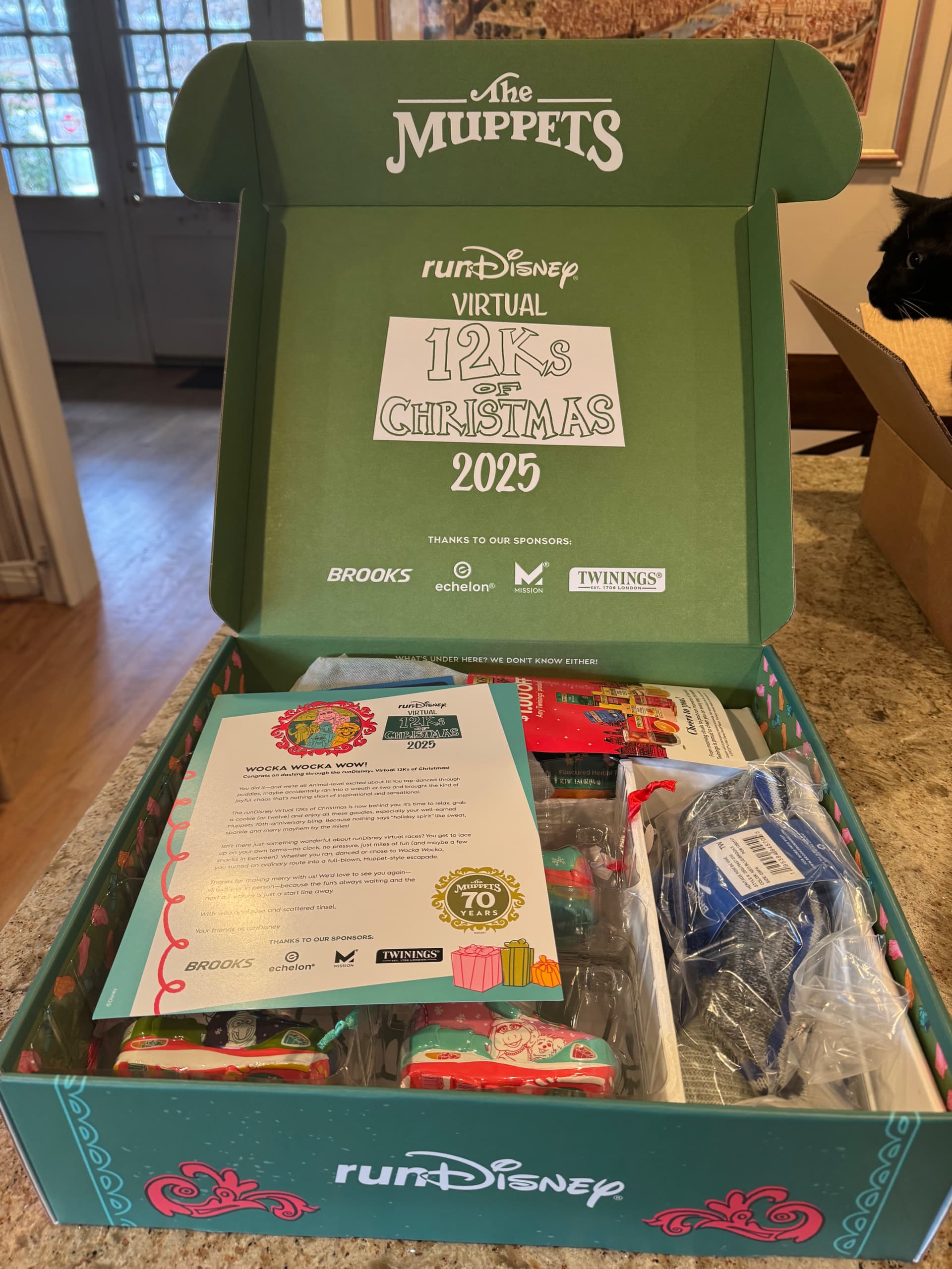 You get 4 medals (that double as Christmas ornaments), a beanie, a Corkcicle, and a box of Twinings Tea.