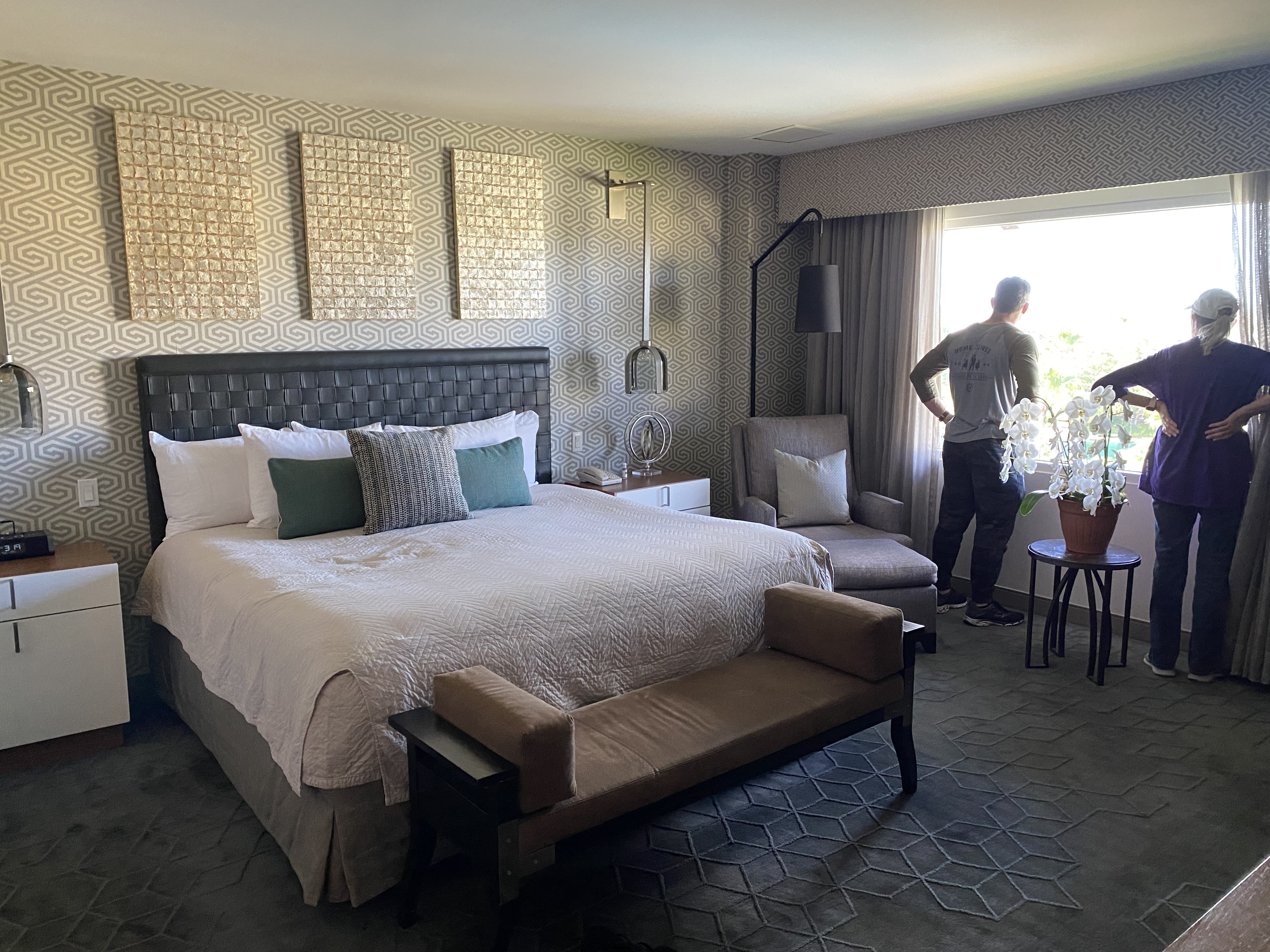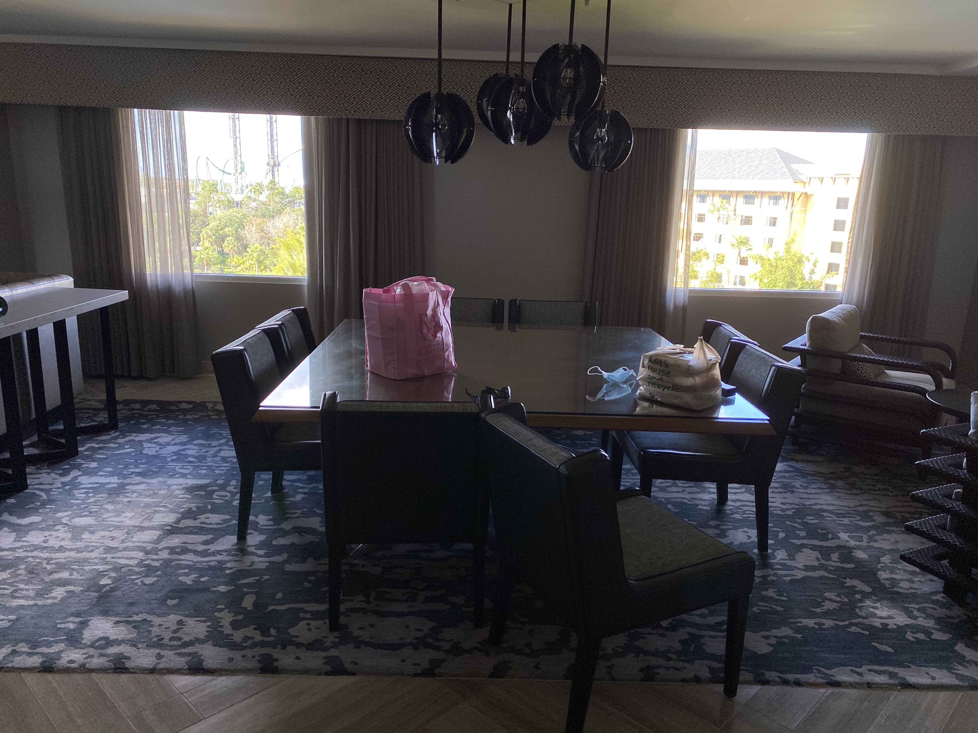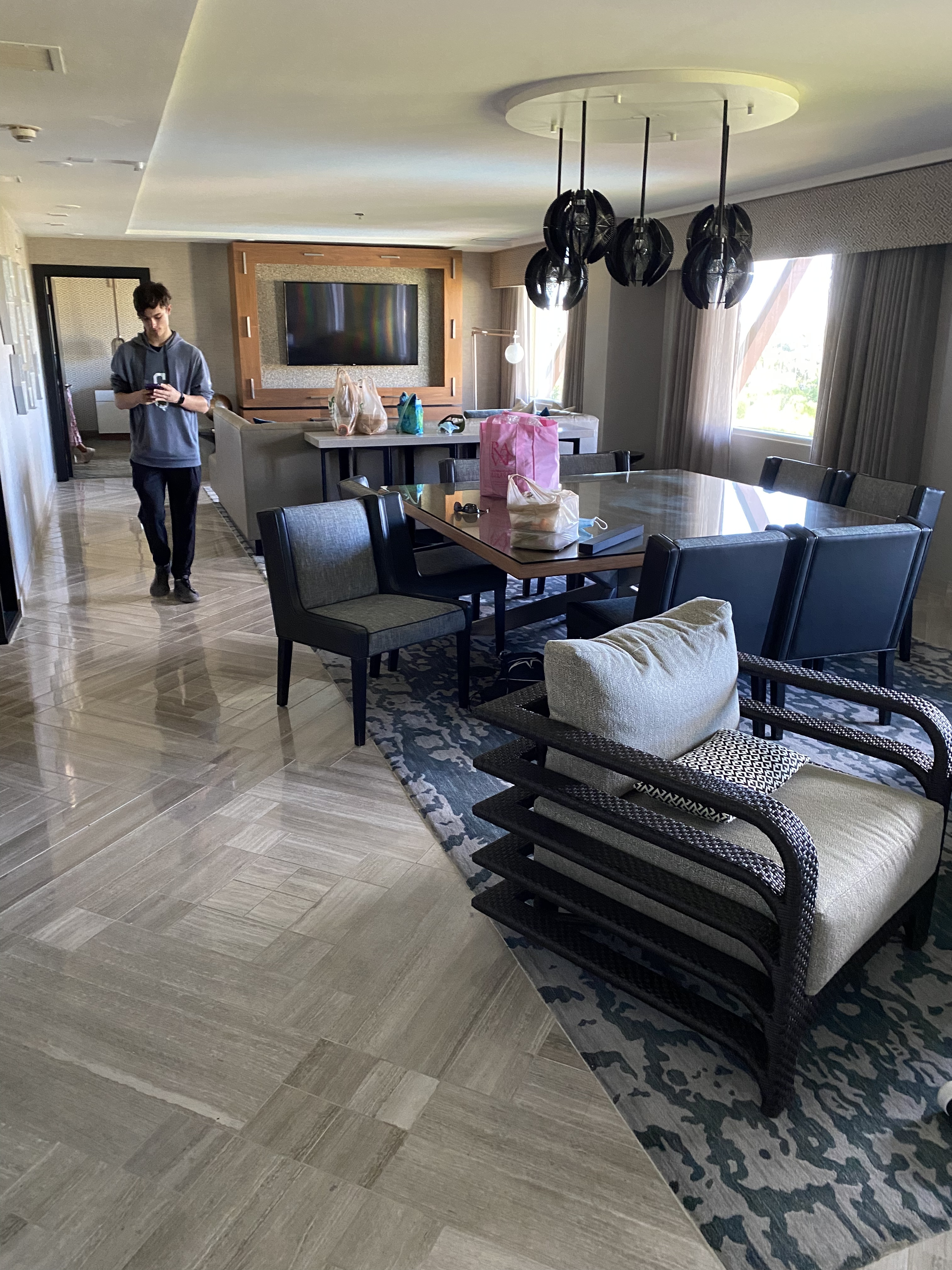 Get this - the presidential suite itself sleeps 2. TWO. A single King. We’ve already moved a rollaway in one corner for our au pair and girls want to sleep on the huge couch so DS16 and grandma get the two queens room.