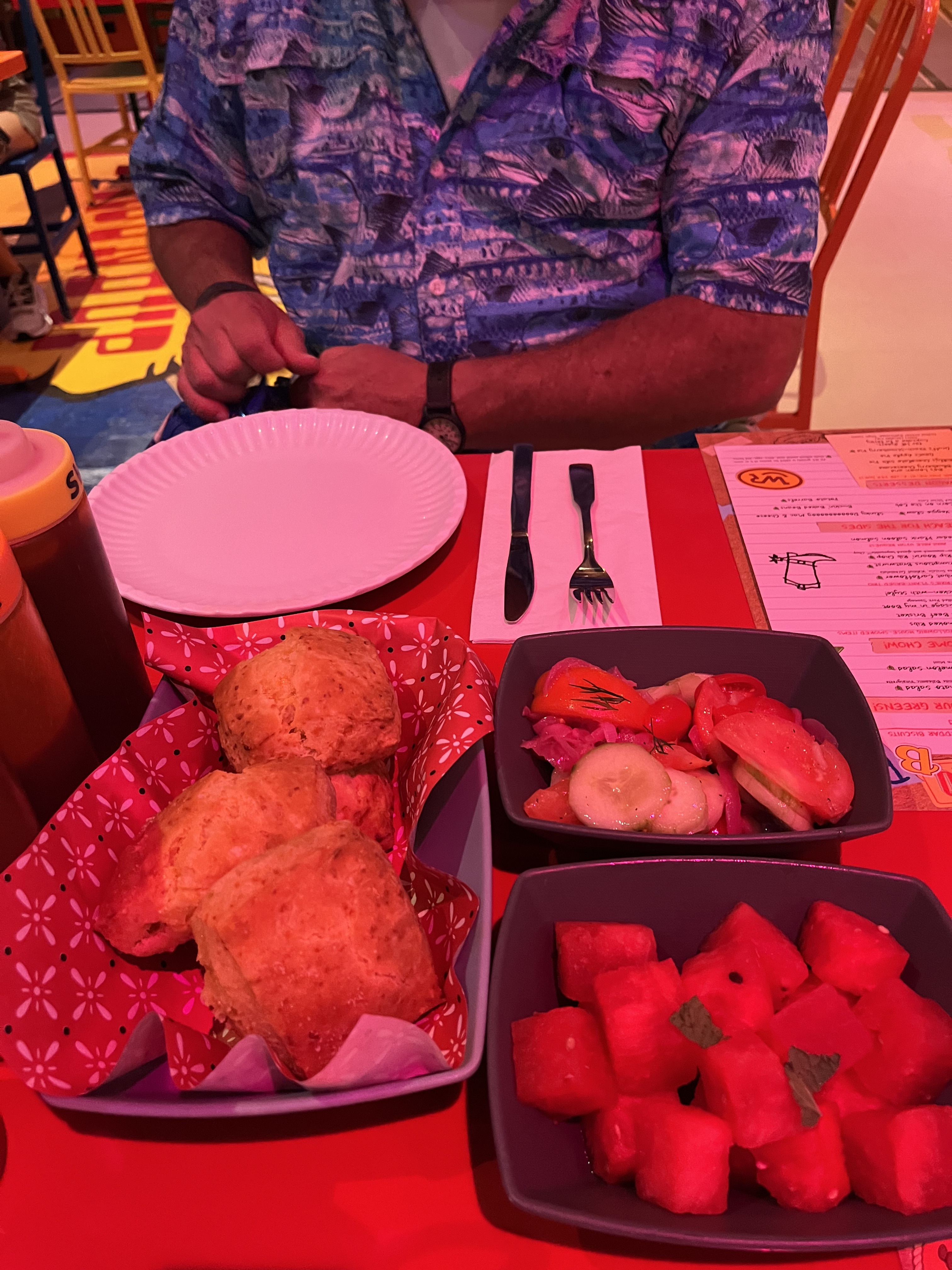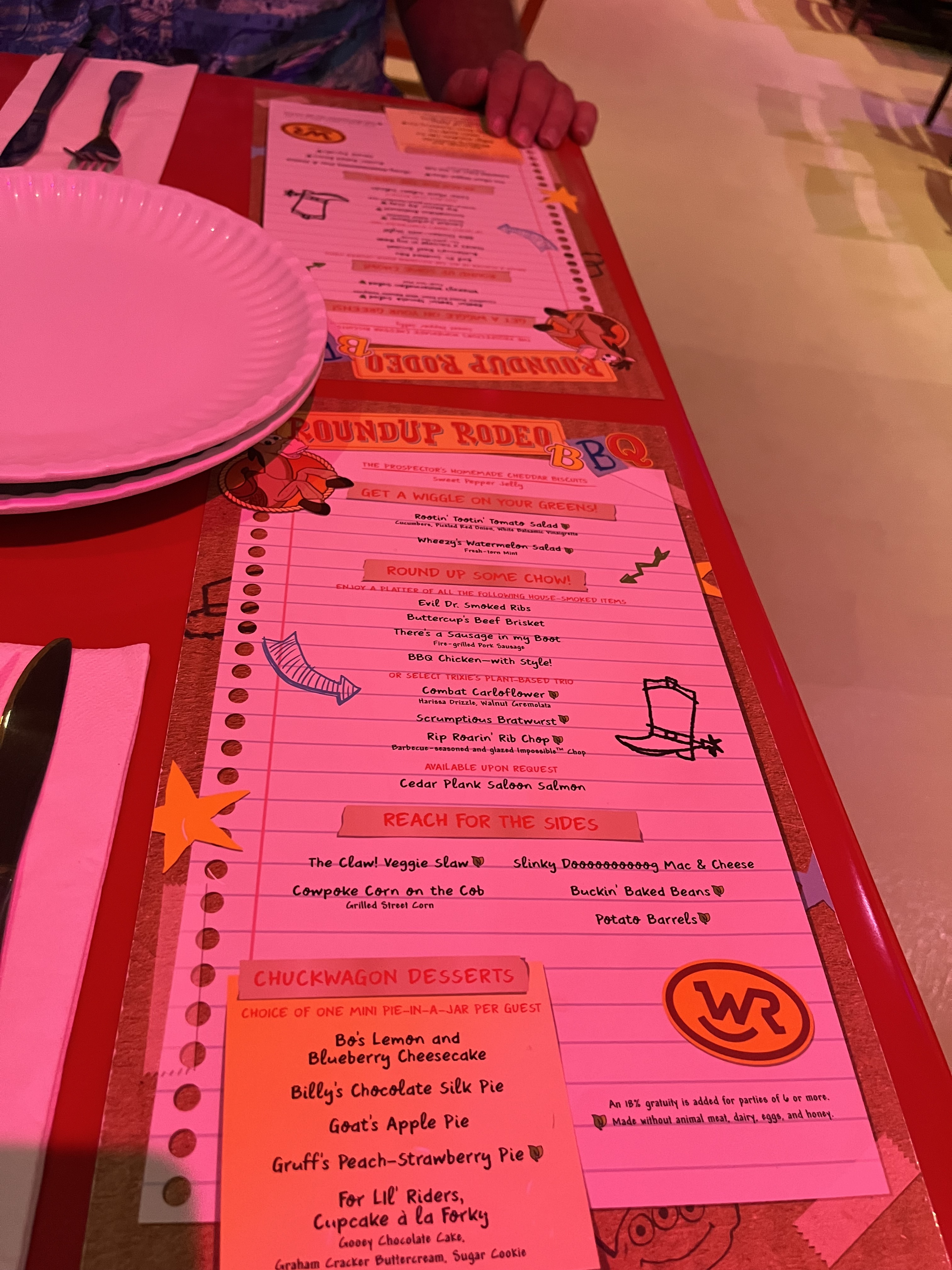 Spur of the moment I booked a lunch res at Woody’s BBQ place. What fun! The theming, the little games, and the food were all awesome!