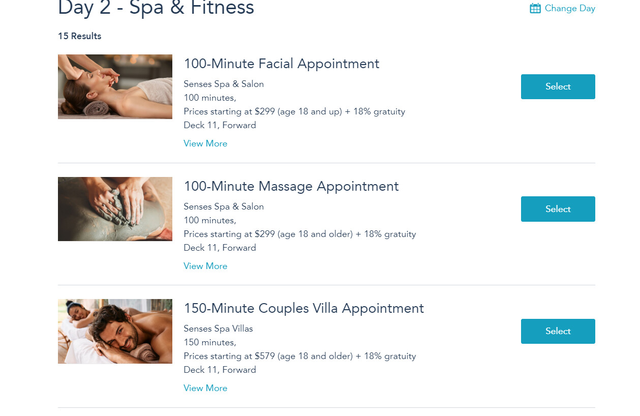 The only thing I want is spa stuff – Rainforest room, couples massage. Do they let you book that at this time, too?